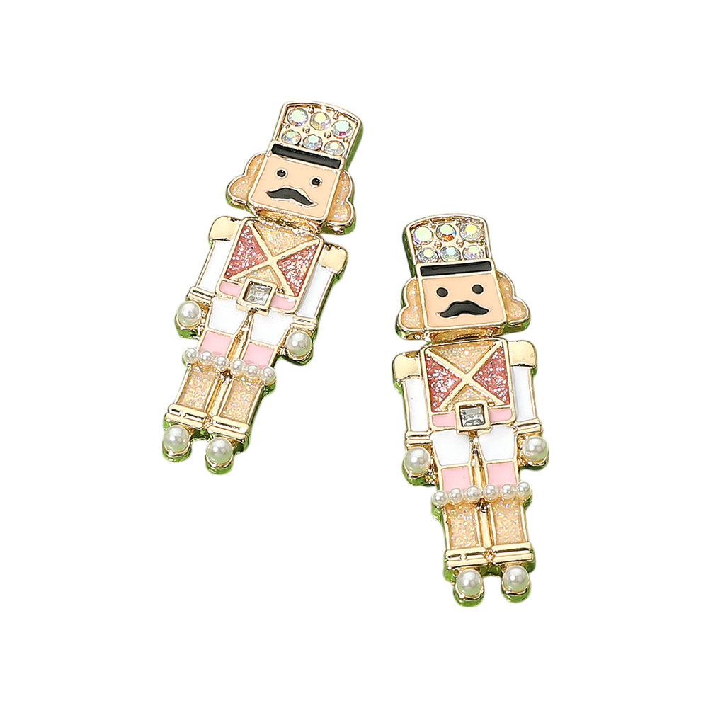 Details • Size : 0.6" X 1.6" • Post Back • Add whimsical cheer to your holiday wardrobe with these nutcracker soldier earrings. Featuring intricate detailing, sparkling embellishments, and festive flair, they're the perfect statement piece for seasonal celebrations. • Lead and Nickel Compliant