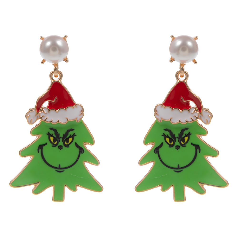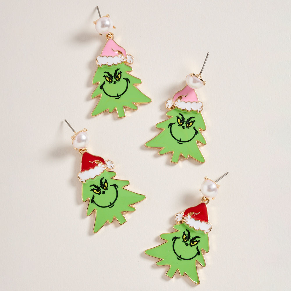 • Celebrate the season with playful charm wearing these green monster-inspired Christmas tree earrings. Featuring a mischievous grin and festive hat, they add a fun twist to your holiday style. Great for parties, gifting, or spreading cheer.