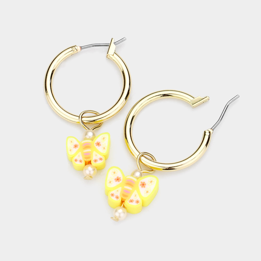 Pearl Butterfly Dangle Metal Hoop Pin Catch Earrings