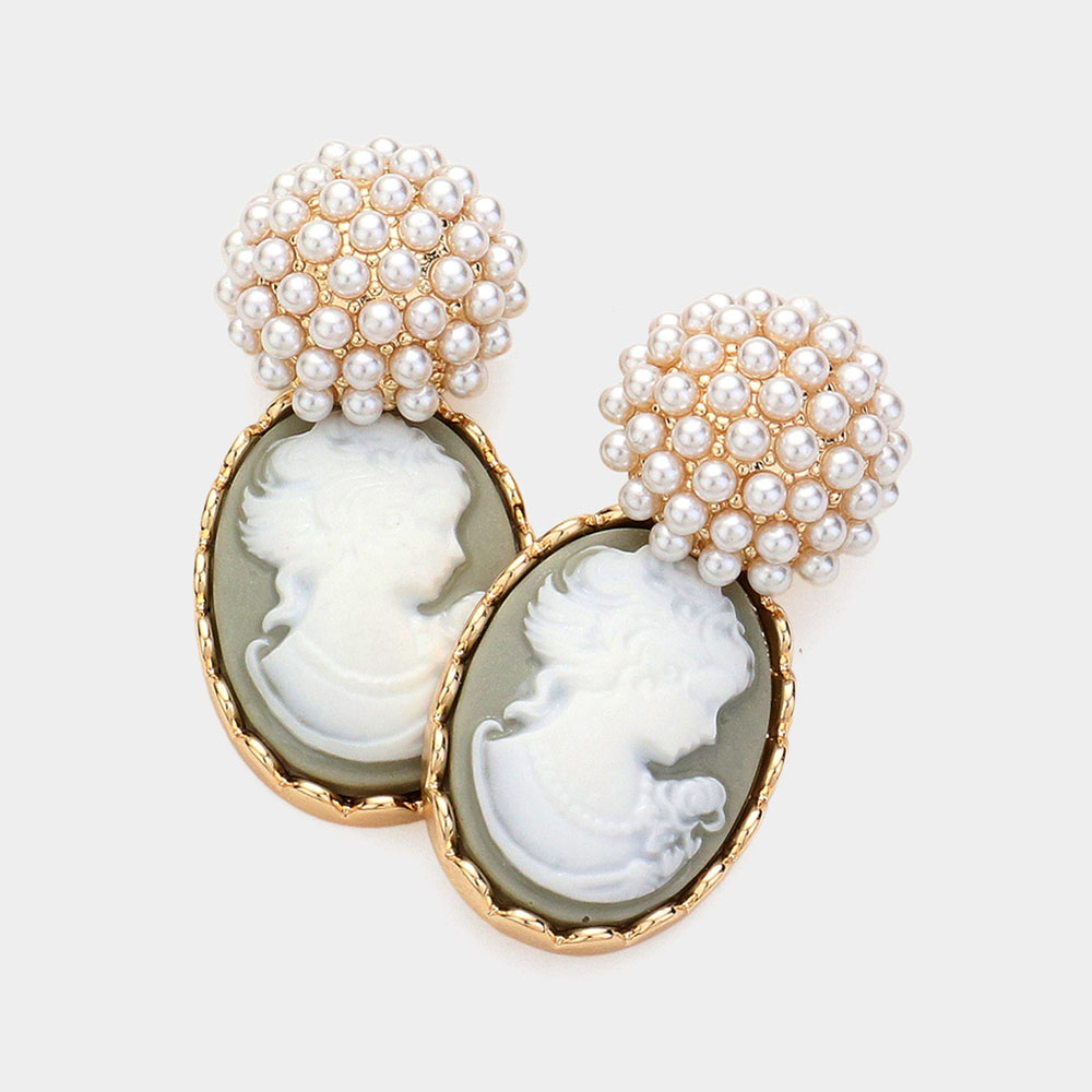 Pearl Cameo Dangle Earrings
