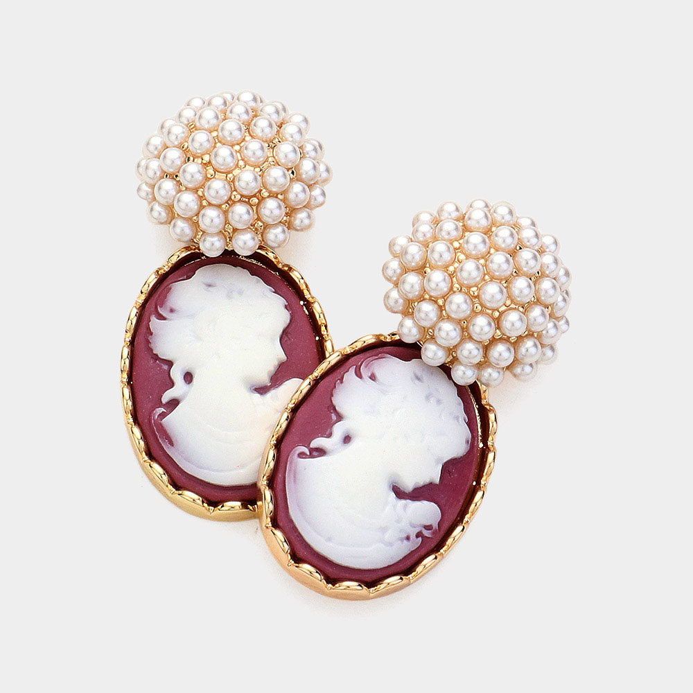 Rhinestone Paved Cameo Pointed Pendant Necklace