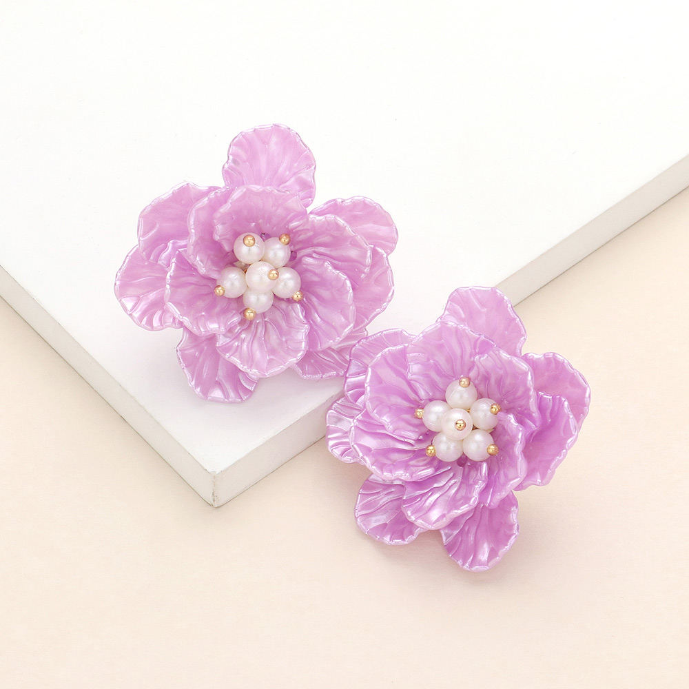 Pearl Centered Resin Flower Earrings