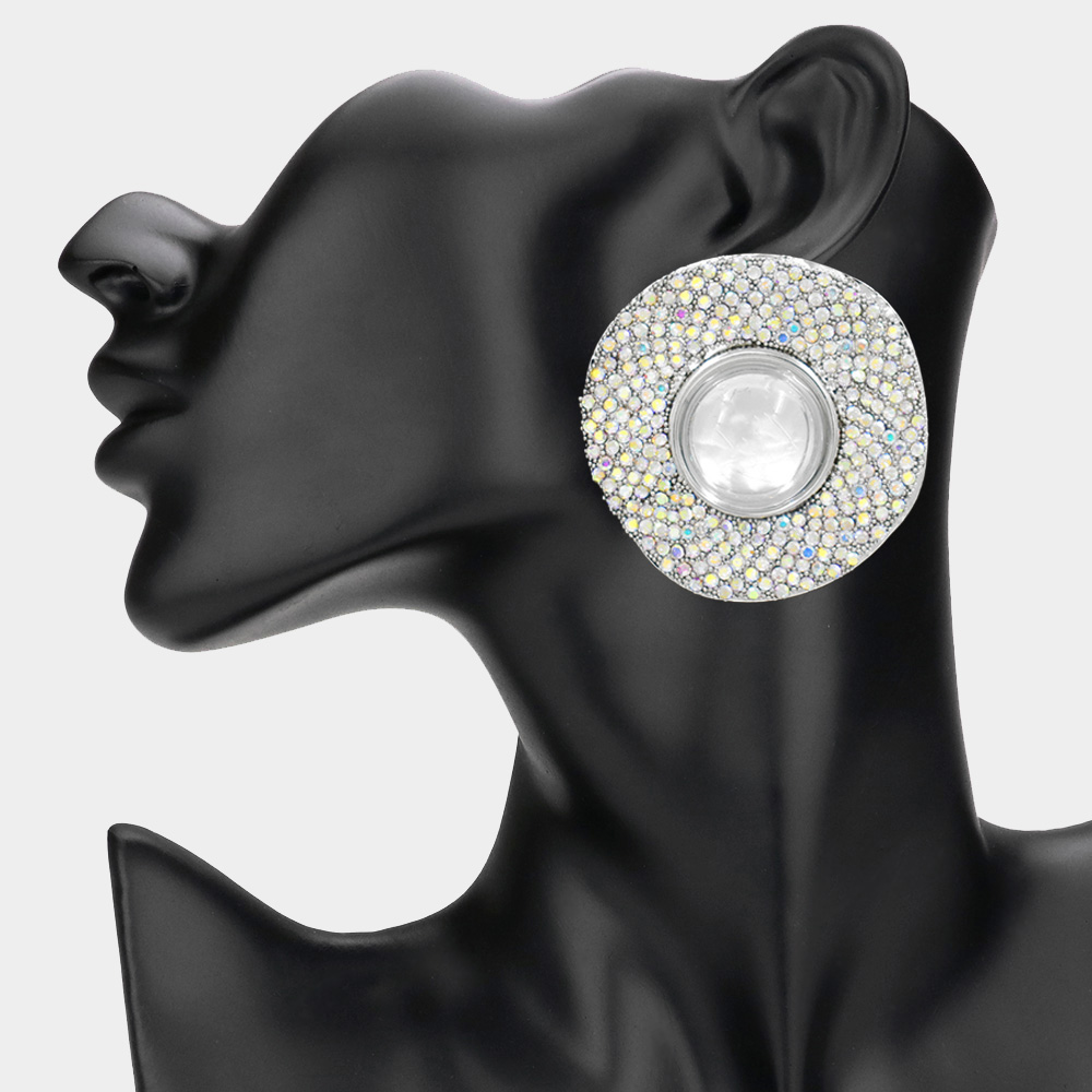 Round Glass Stone Evening Stud Earrings