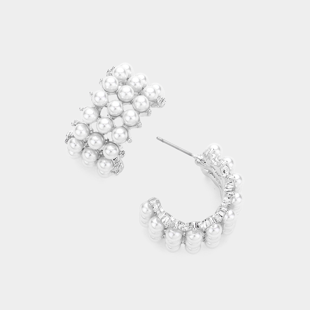 12PCS - Pearl Embellished Stone Paved Accented Stretch Hairbands