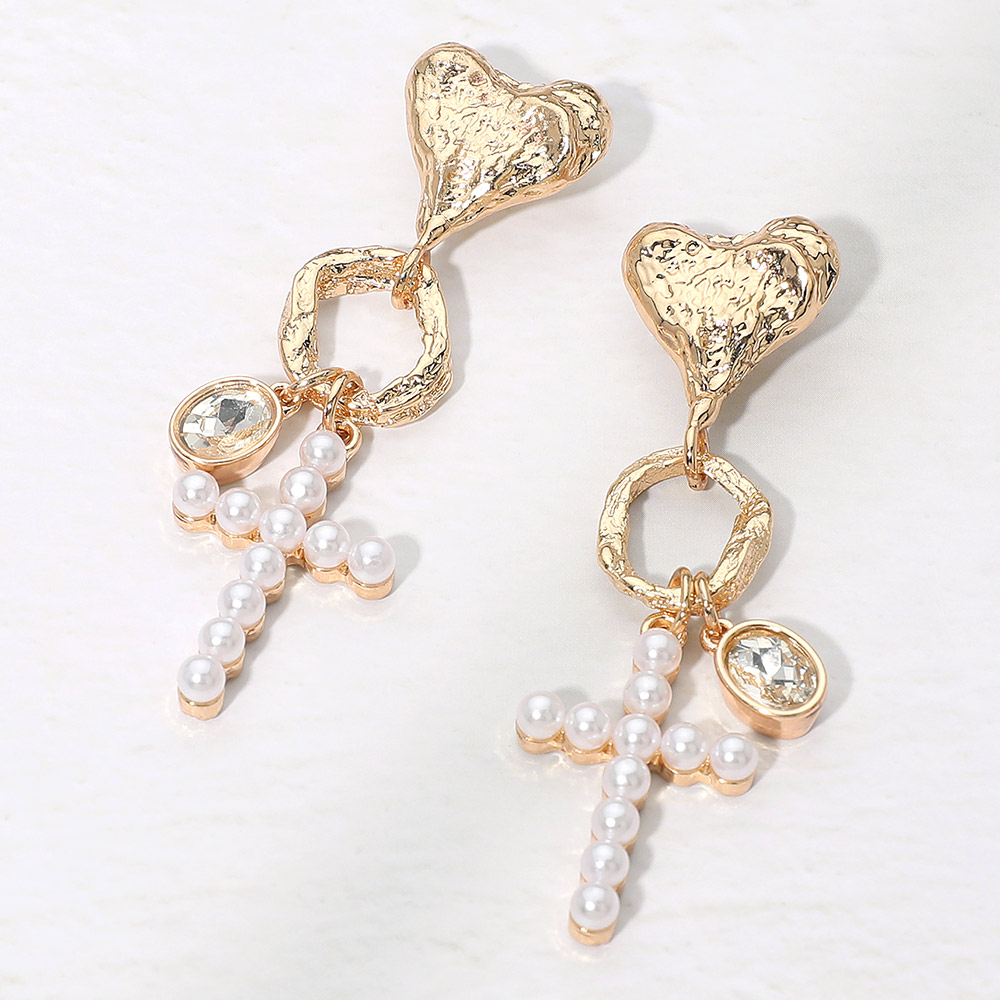 Details • Size : 0.75" X 2.8" • Post Back • Make a bold yet romantic statement with these heart cross drop earrings showcasing layered charm elements and graceful movement. Designed to add eye-catching detail without overwhelming your look, they’re perfect for elevating everyday outfits or accenting special occasion styles. • Lead and Nickel Compliant