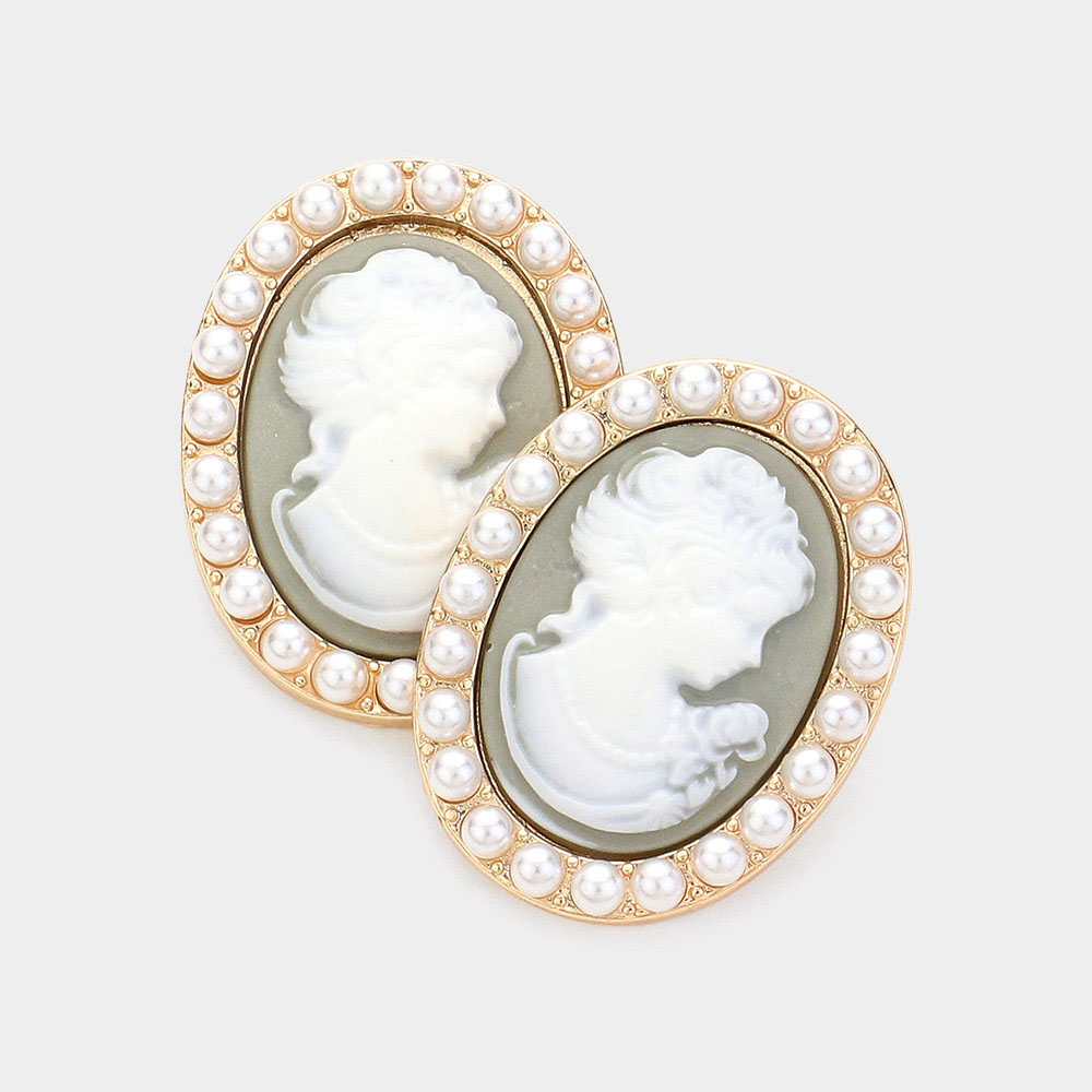 Pearl Embellished Cameo Stud Earrings