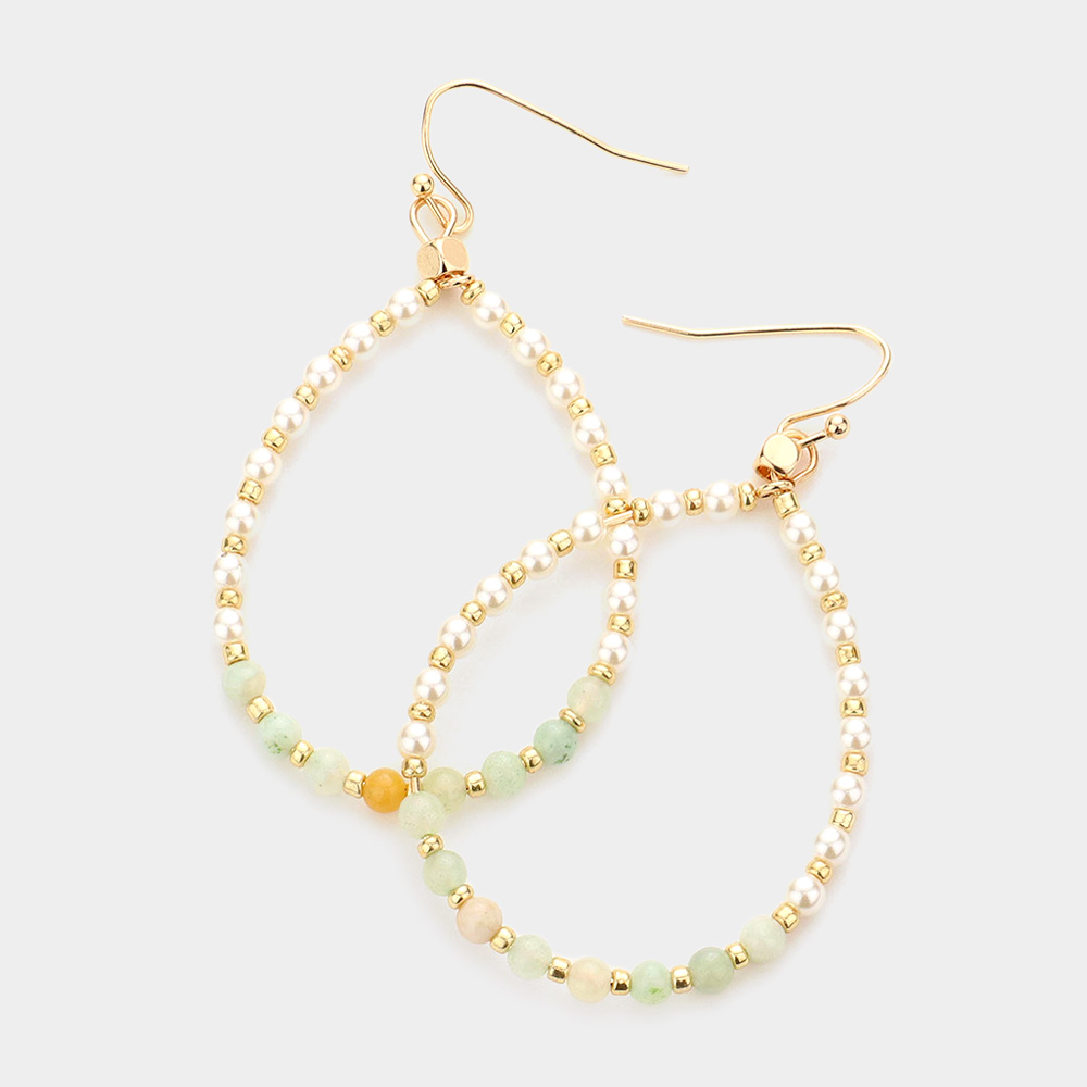 Pearl Natural Stone Open Teardrop Dangle Earrings