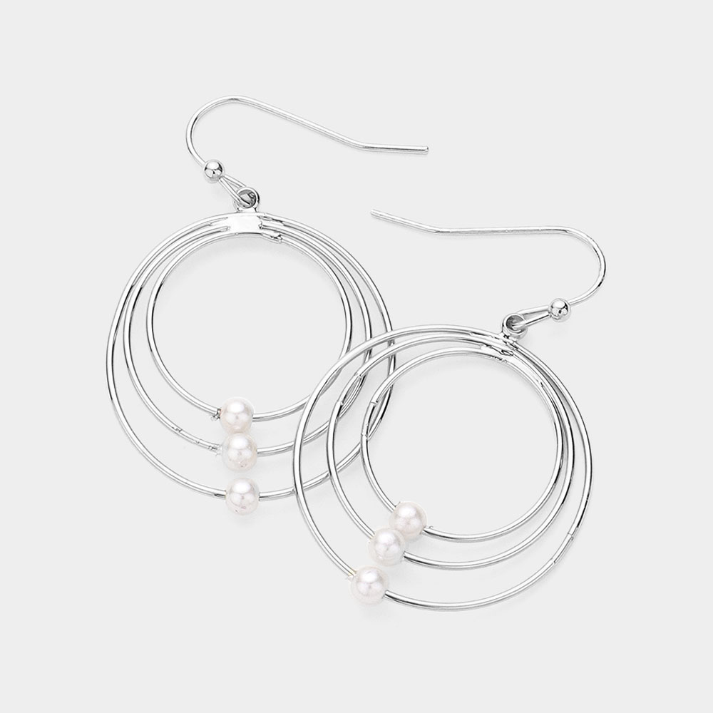 Pearl Pointed Abstract Triple Open Circle Dangle Earrings