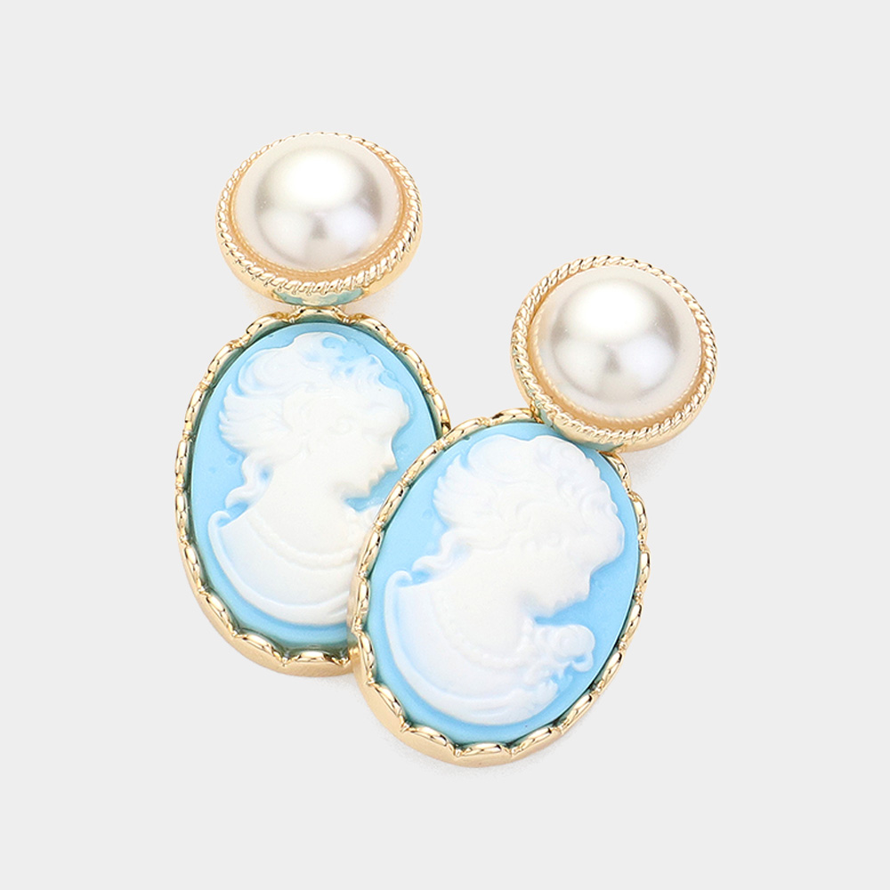 Rhinestone Paved Cameo Pointed Pendant Necklace