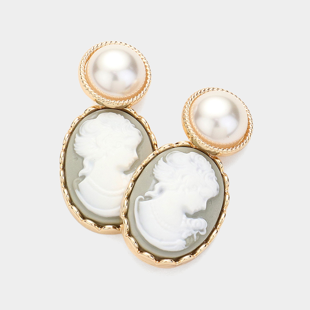 Rhinestone Paved Embellished Cameo Pointed Pin Brooch