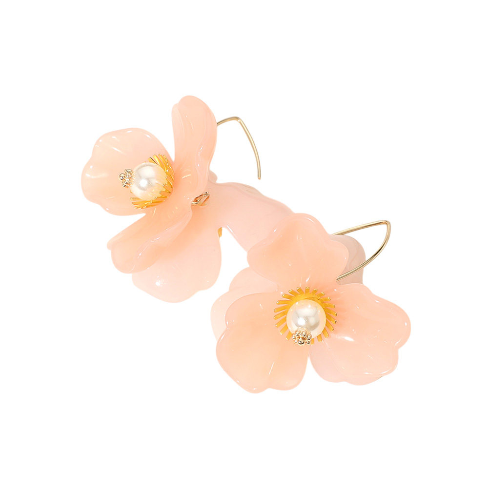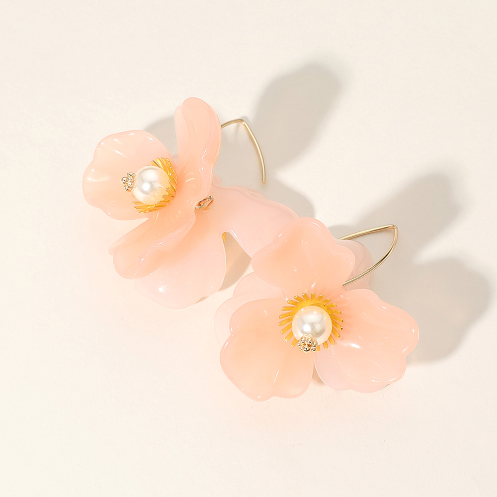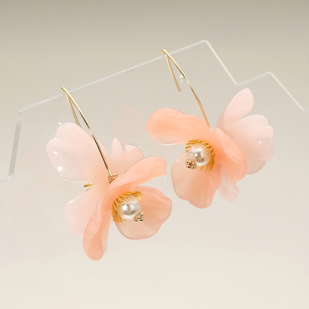Pearl Pointed Resin Petal Flower Drop Earrings