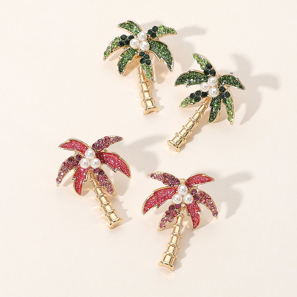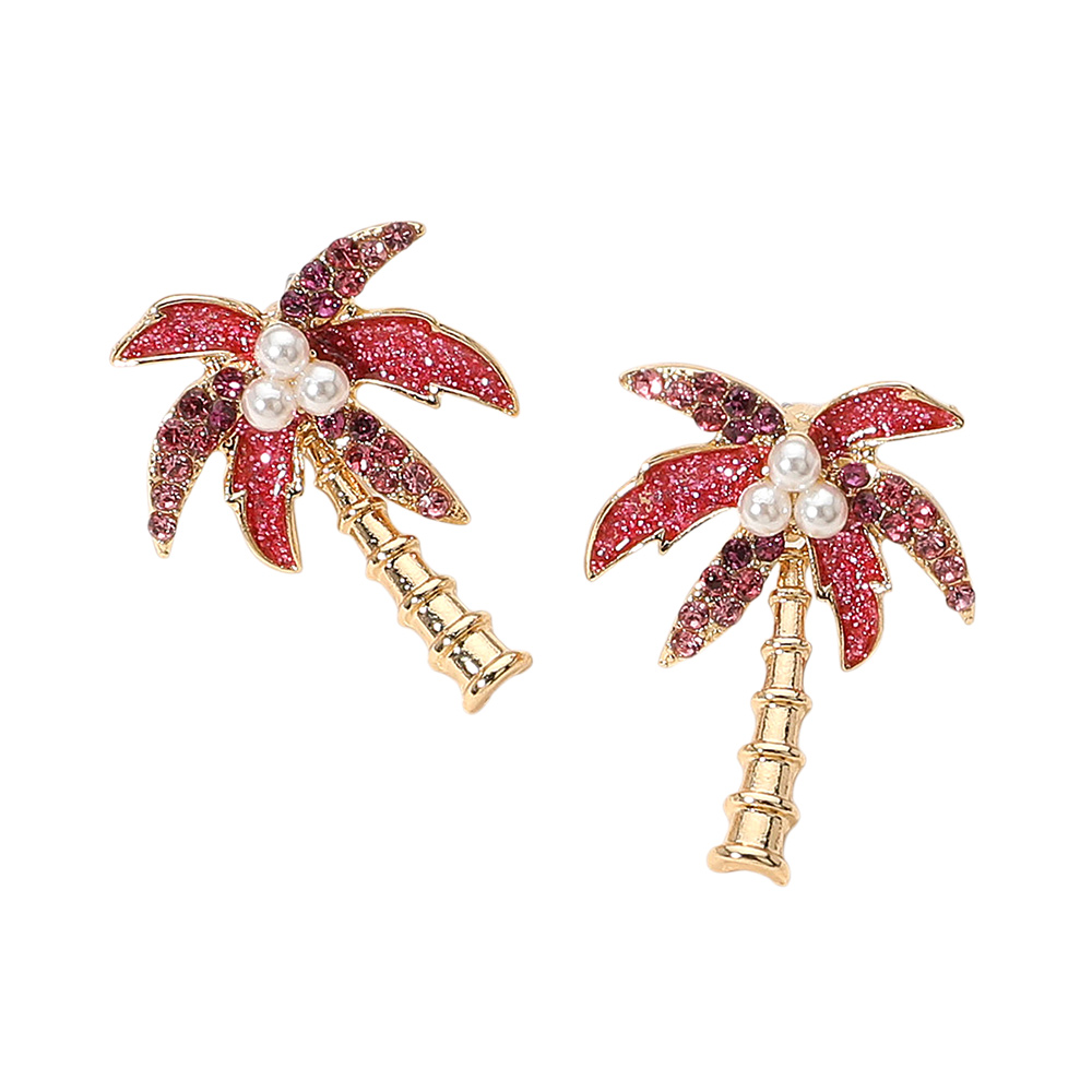 Pearl Pointed Stone Paved Palm Tree Earrings