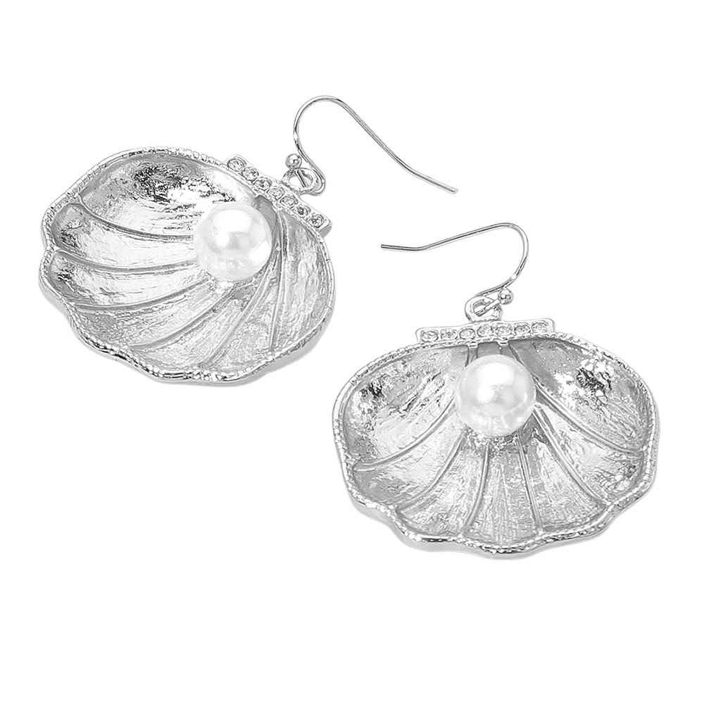 Pearl Pointed Textured Metal Shell Dangle Earrings Pearl Pointed Textured Metal Shell Dangle Earrings