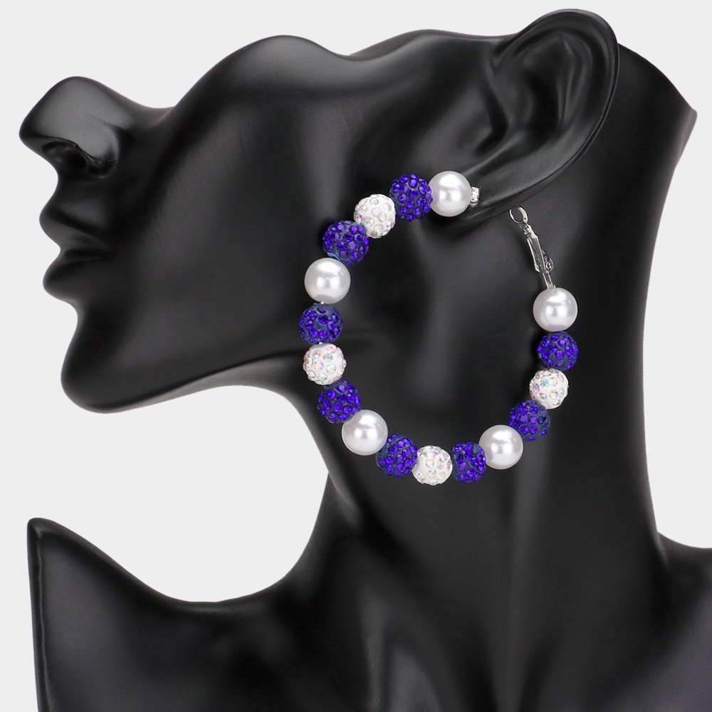 Pearl Shamballa Ball Beaded Hoop Earrings