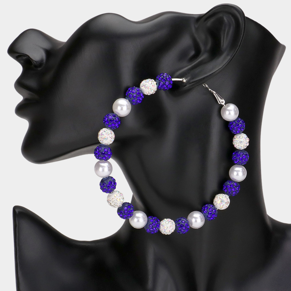 Pearl Shamballa Ball Beaded Oversized Hoop Earrings