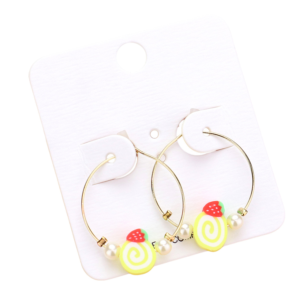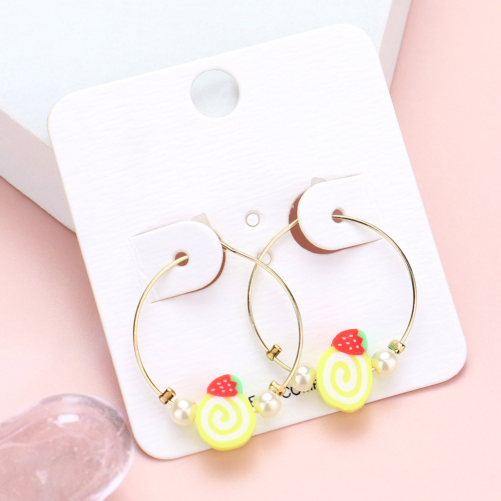 Pearl Strawberry Cake Accented Metal Hoop Earrings