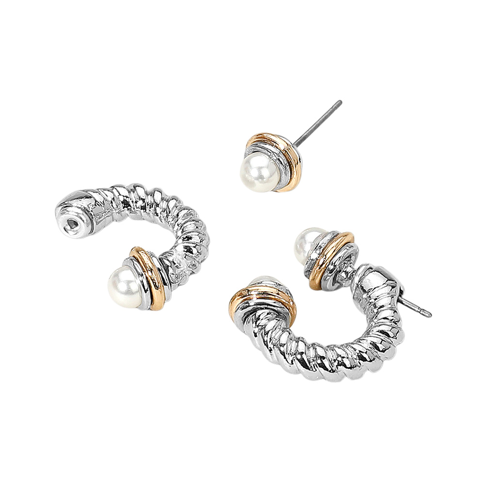 Pearl Tip Two Tone Twisted Metal Ear Jacket Earrings