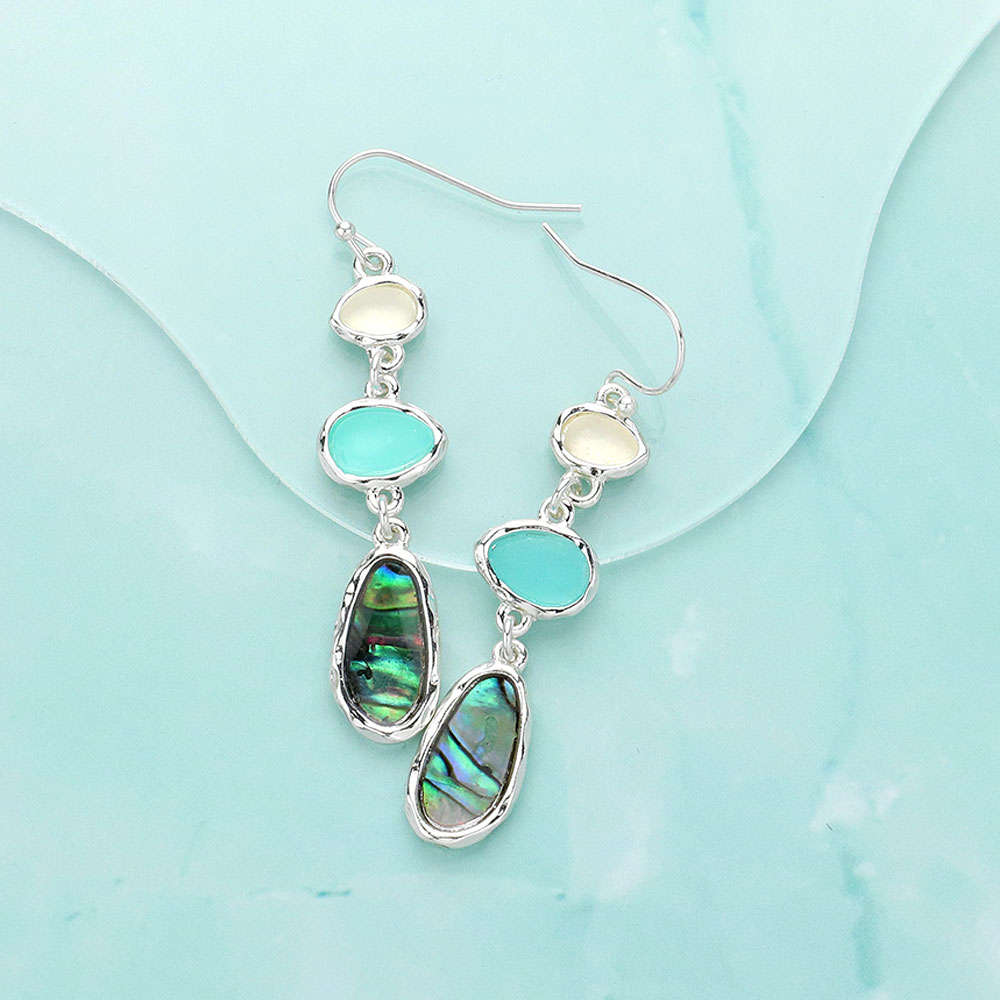 Triple Abalone Quatrefoil Link Dropdown Earrings