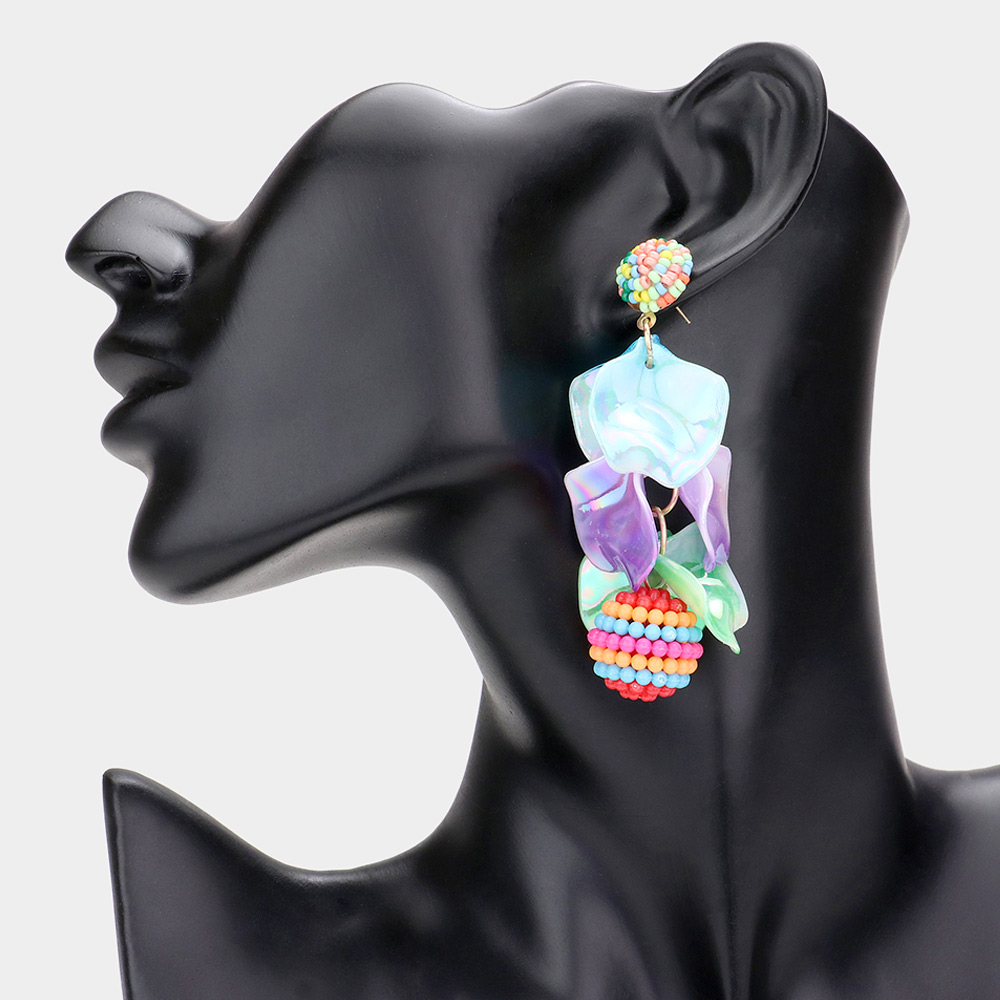 Pearl Beaded Top Handle Flap Hand Bag / Crossbody Bag
