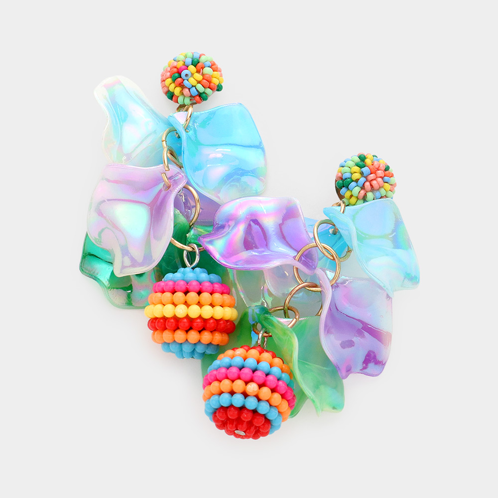 Polished Metal Accent Resin Pebble Beaded Stretch Bracelet