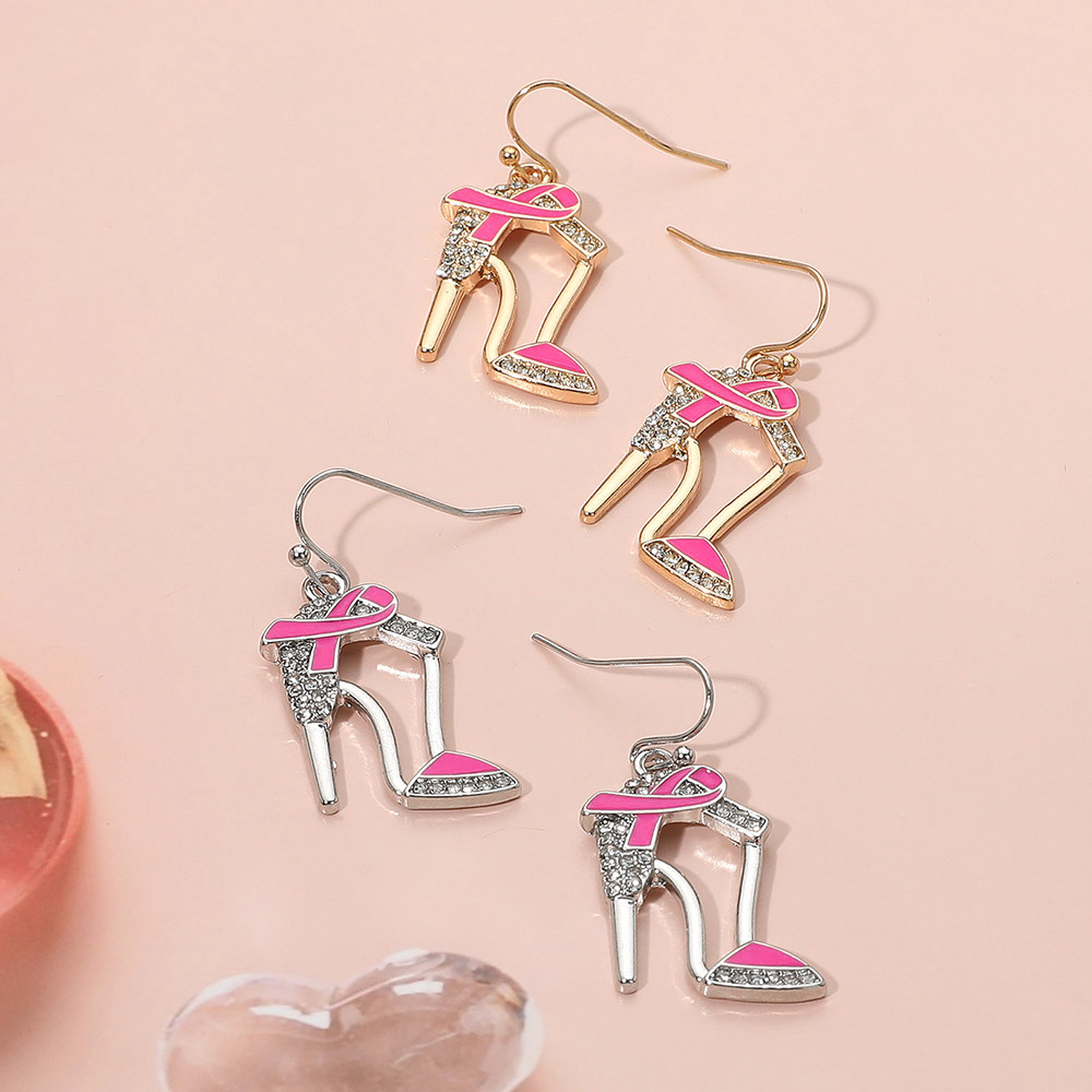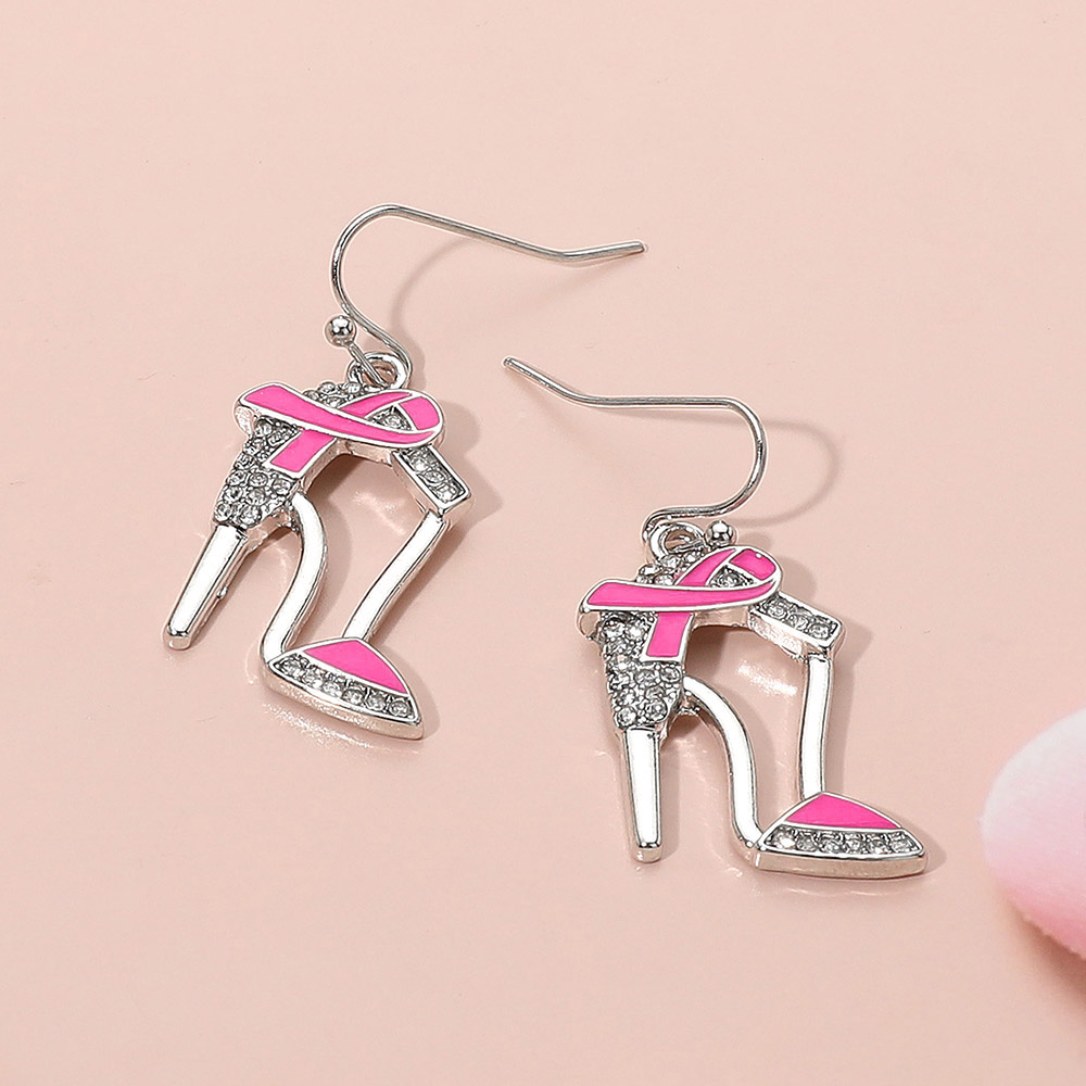 Pink Ribbon Accent Rhinestone Paved High Heel Dangle Earrings Pink Ribbon Accent Rhinestone Paved High Heel Dangle Earrings Pink Ribbon Accent Rhinestone Paved High Heel Dangle Earrings