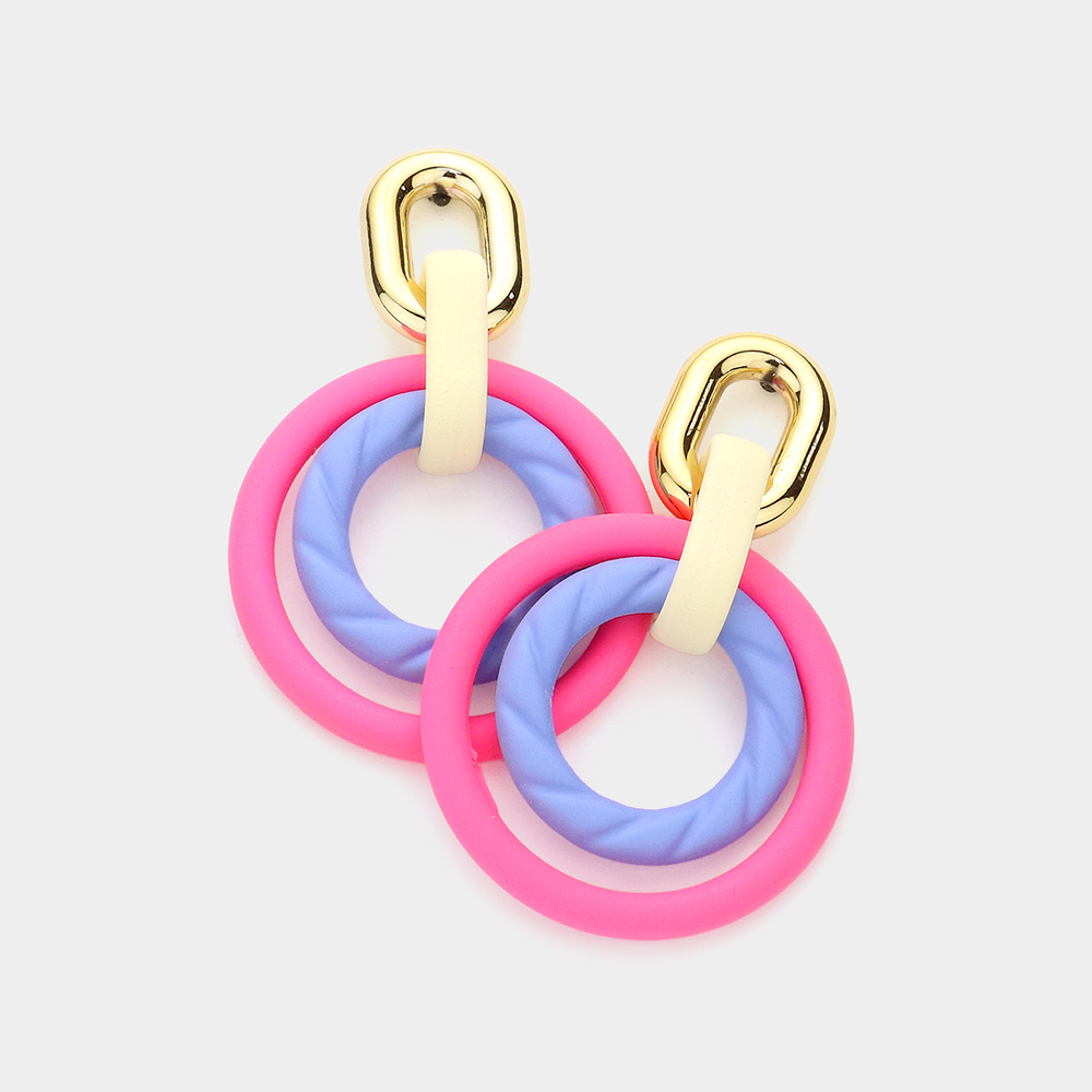 Polymer Clay Geometric Open Circle Link Dangle Earrings