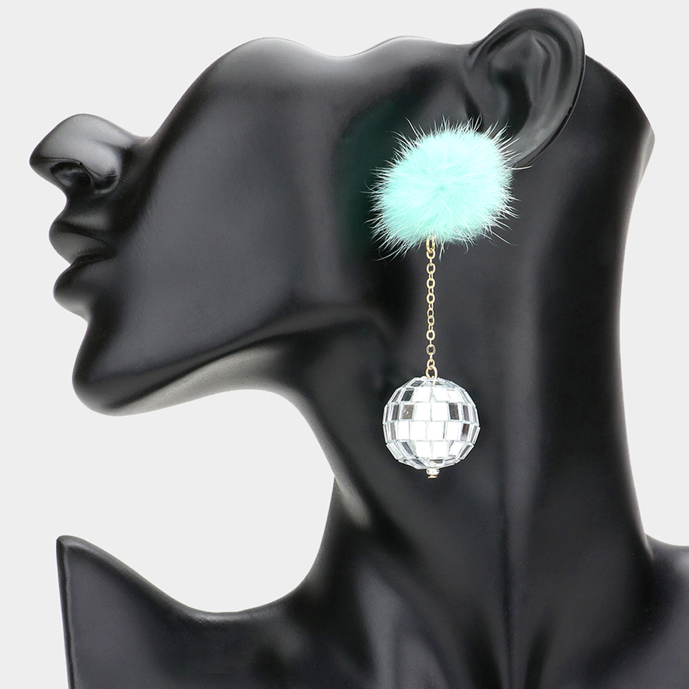 Glittered Resin Pom Christmas Dinosaur Dangle Earrings