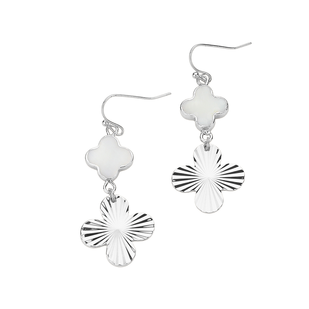 Silver Dipped Rhinestone Rim Quatrefoil Stud Earrings