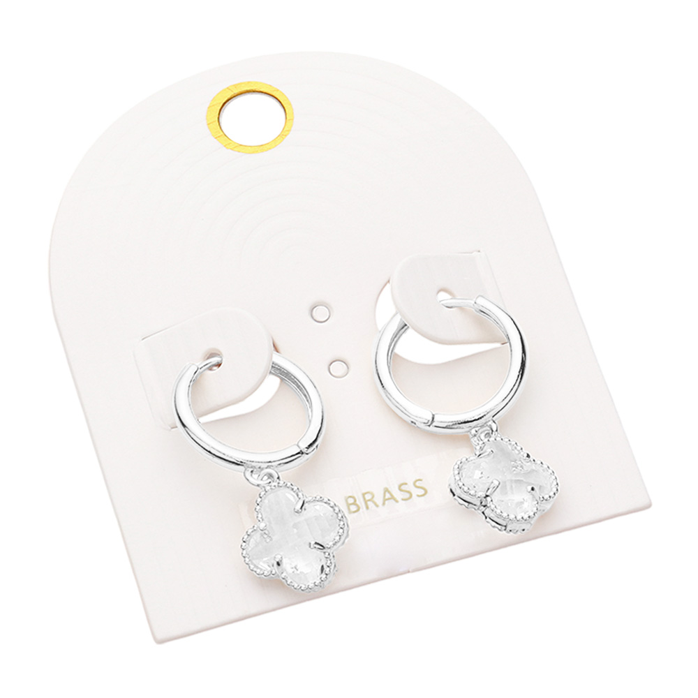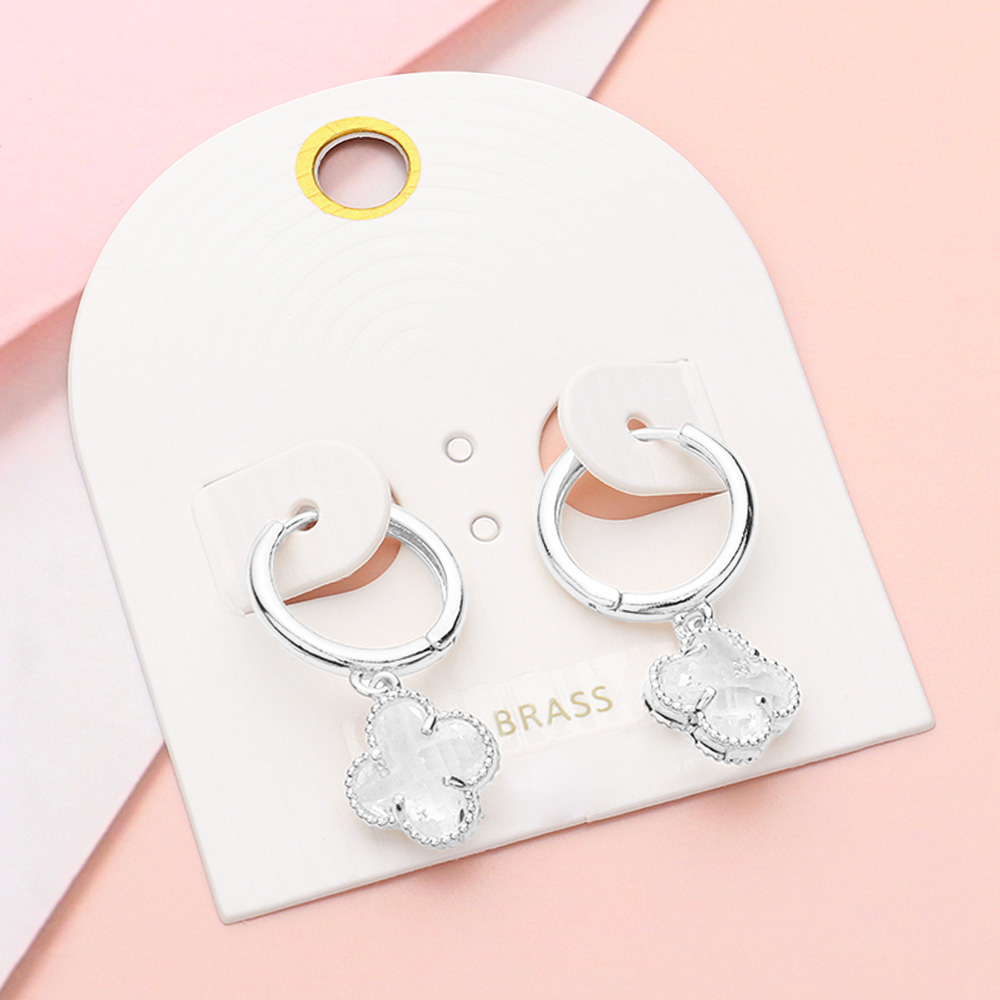 Quatrefoil Stone Cluster Dangle Huggie Earrings