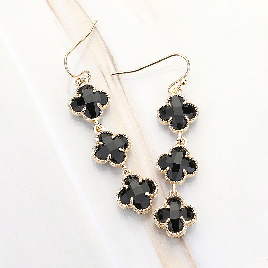 Quatrefoil Stone Cluster Dropdown Dangle Earrings