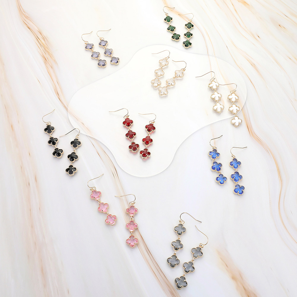 Quatrefoil Stone Cluster Dropdown Dangle Earrings