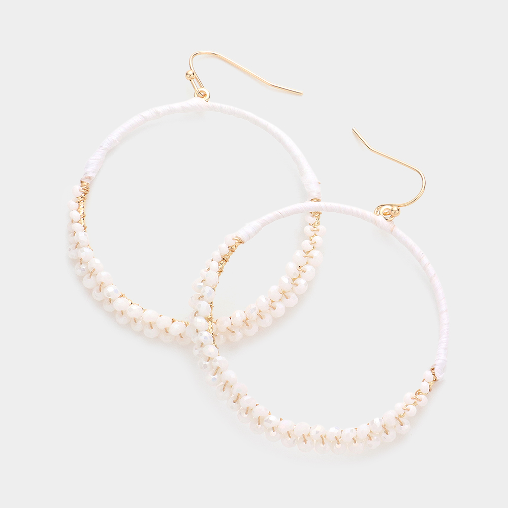 Raffia Faceted Bead Wrapped Open Metal Circle Dangle Earrings