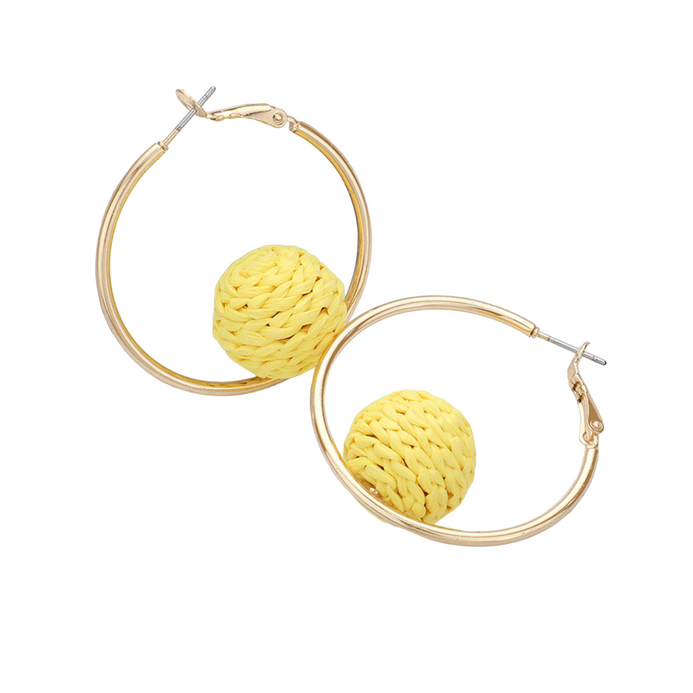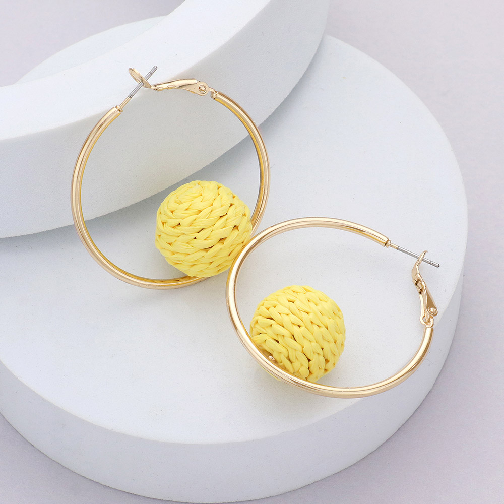 Raffia Wrapped Ball Pointed Metal Hoop Earrings