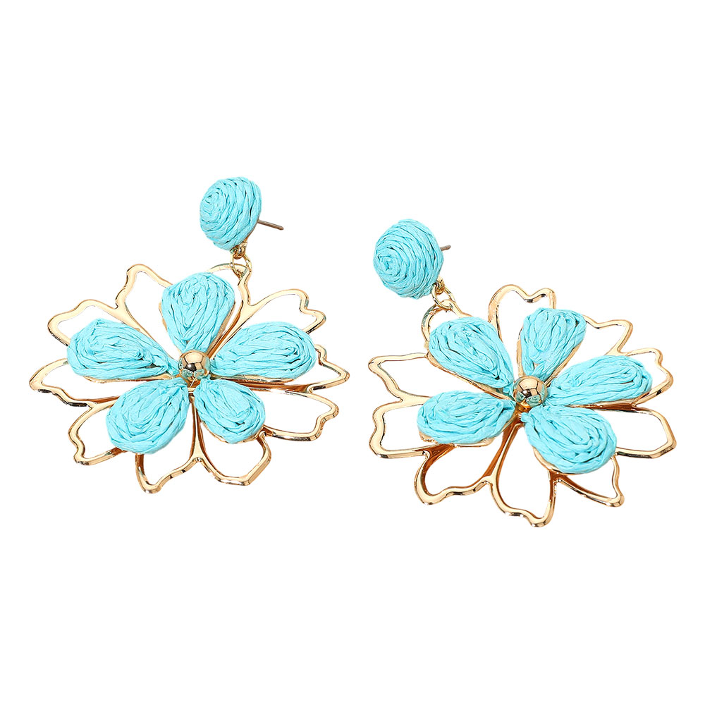 Raffia Wrapped Floral Petal Dangle Earrings Raffia Wrapped Floral Petal Dangle Earrings