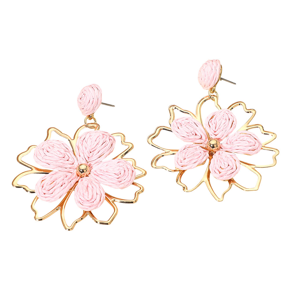 Raffia Wrapped Floral Petal Dangle Earrings Raffia Wrapped Floral Petal Dangle Earrings