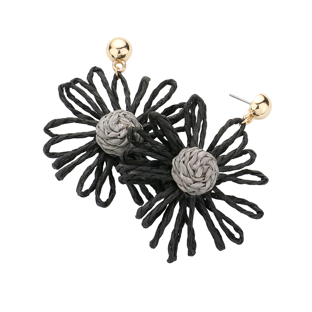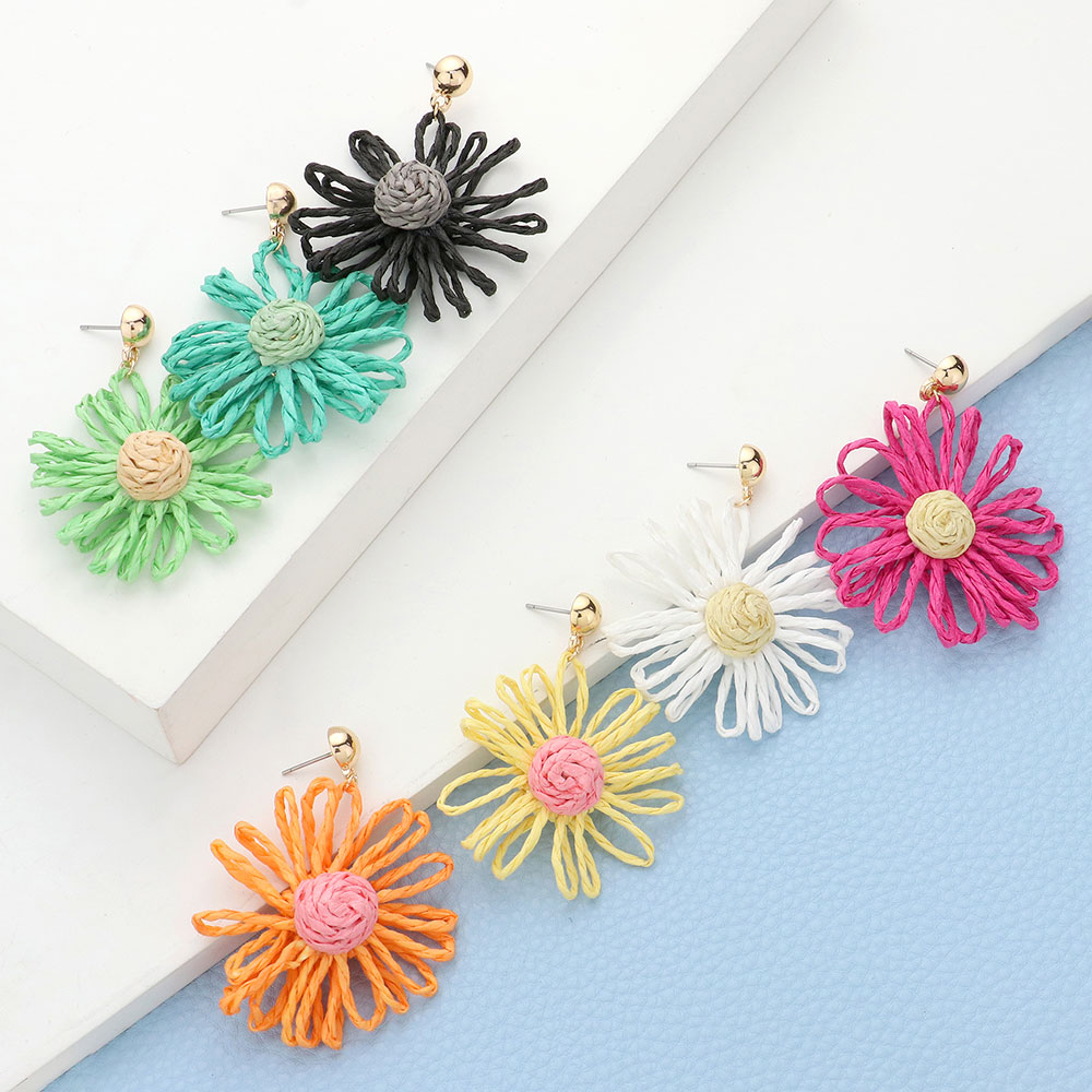 Hammered Metal Disc Resin Smile Flower Link Dangle Earrings