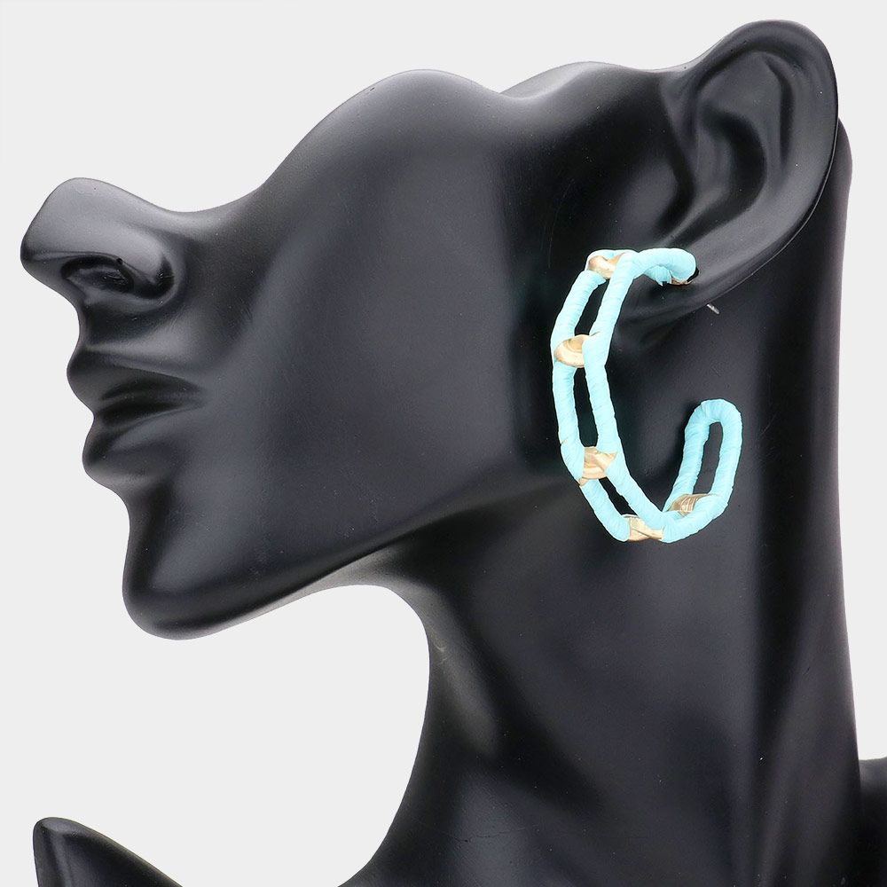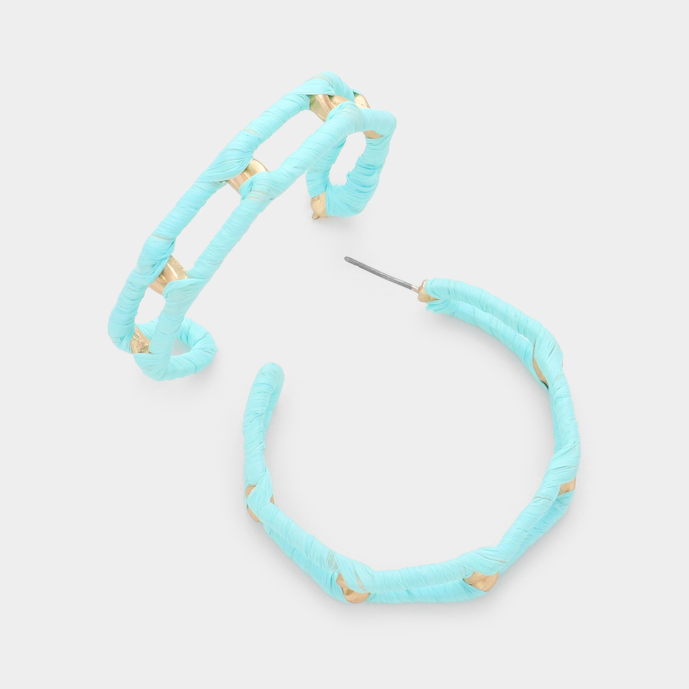 Raffia Wrapped Open Metal Oval Link Half Hoop Earrings