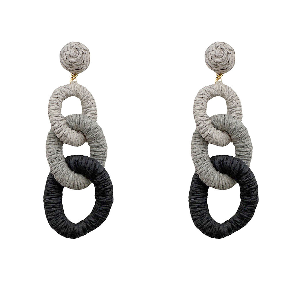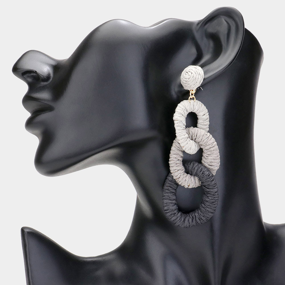 Raffia Wrapped Triple Oval Link Dropdown Earrings