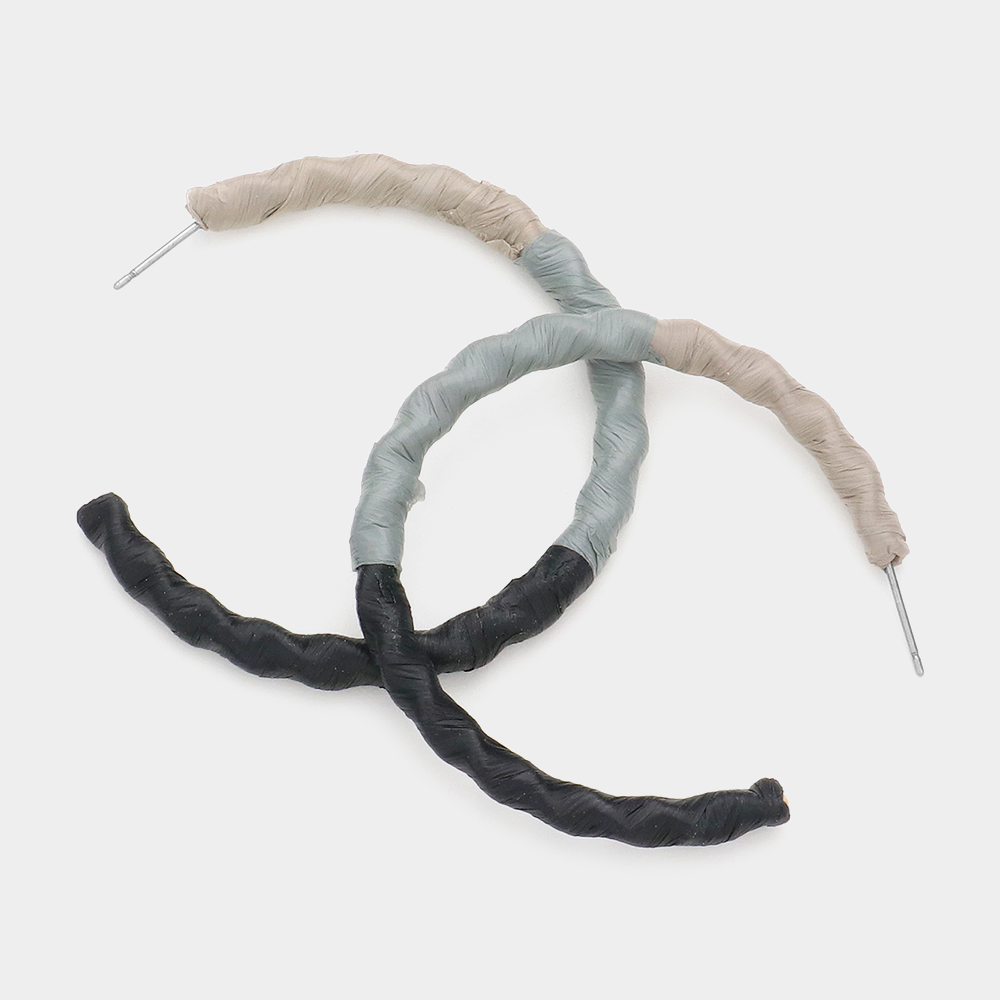 Raffia Wrapped Wavy Hoop Earrings