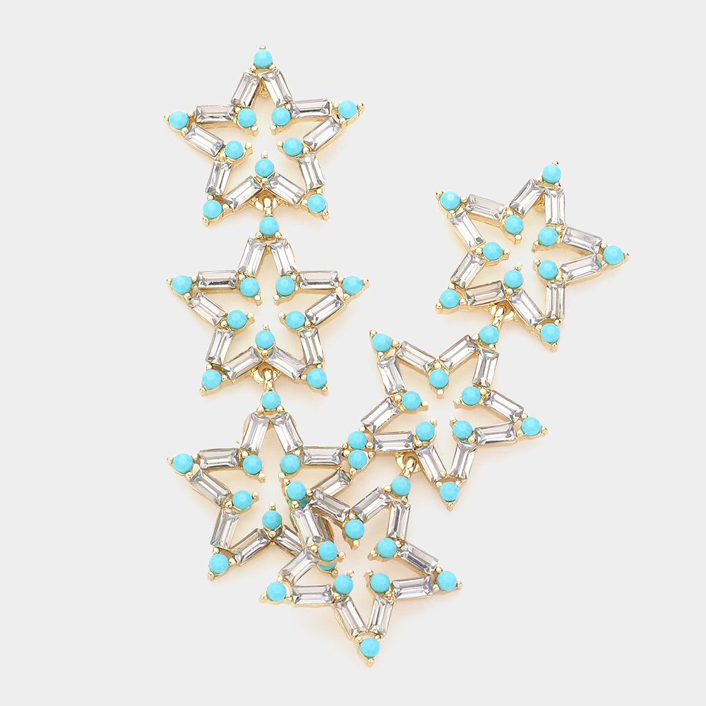 Star CZ Stone Pointed Marquise Stone Dangle Evening Earrings