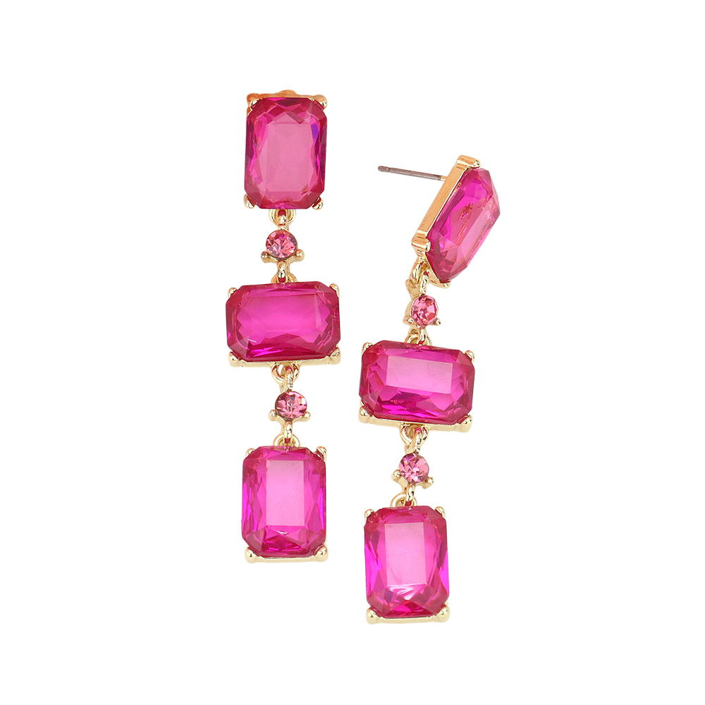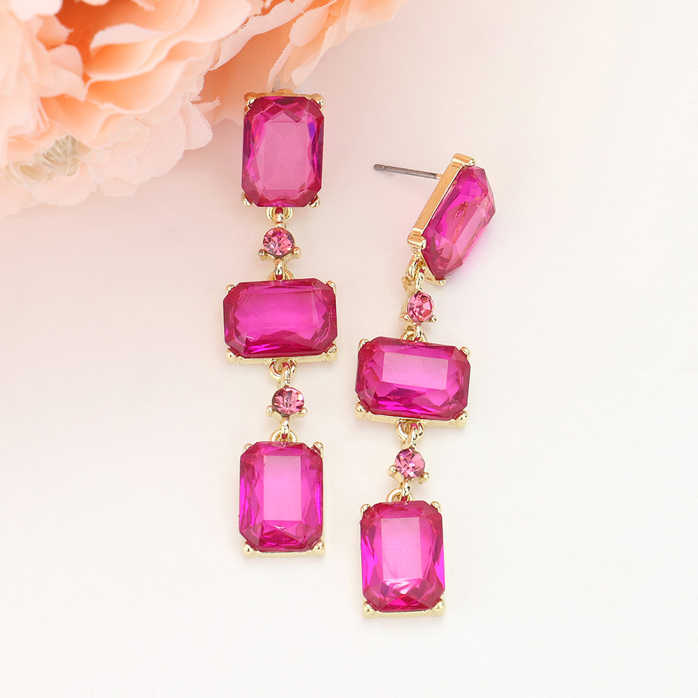 Square Rectangle Glass Stone Link Drop Dangle Earrings