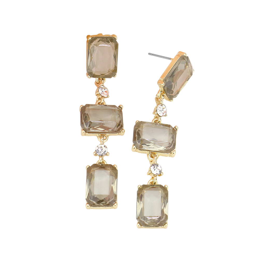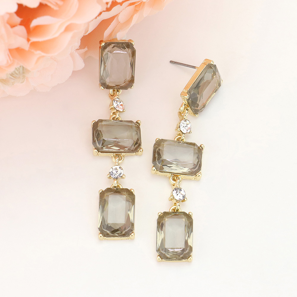 Rectangle Glass Stone Link Dropdown Earrings