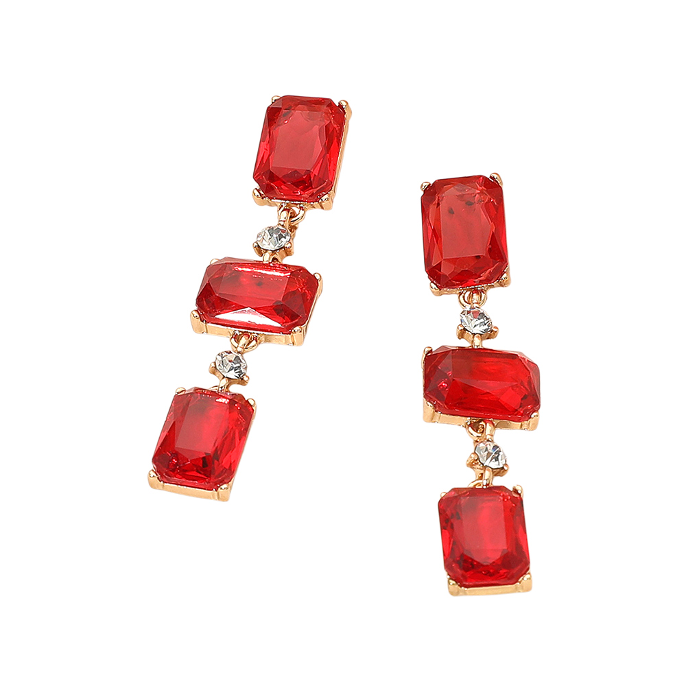 Rectangle Glass Stone Link Dropdown Earrings