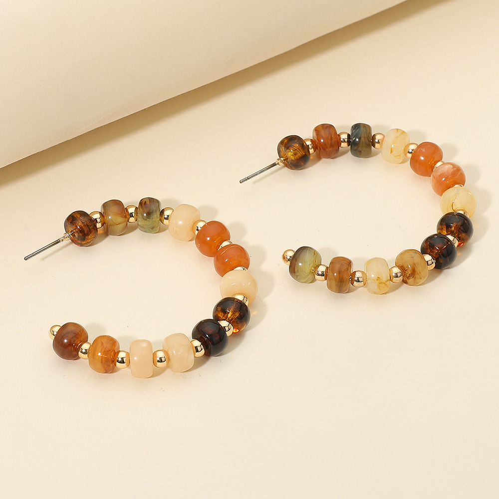 Details • Size : 2" X 2" • Post Back • Stylish beaded hoop earrings featuring glossy resin beads and gold-tone accents. Lightweight and comfortable for daily wear, these trendy hoops add a warm, modern touch to any outfit. Perfect for casual looks or gifting. • Lead and Nickel Compliant