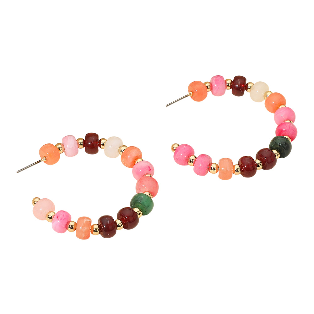 • Stylish beaded hoop earrings featuring glossy resin beads and gold-tone accents. Lightweight and comfortable for daily wear, these trendy hoops add a warm, modern touch to any outfit. Perfect for casual looks or gifting.