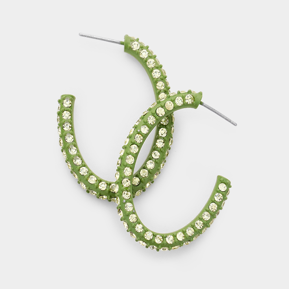 Resin Colorful Rhinestone Pave Hoop Earrings