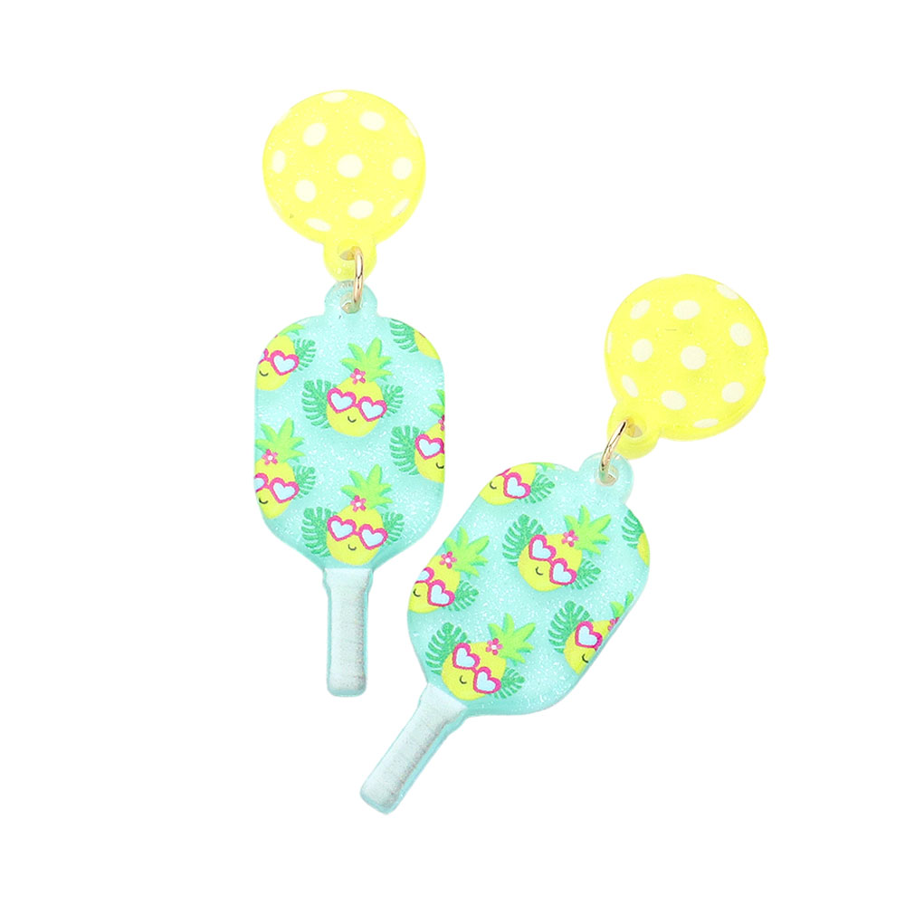 Resin Flower Printed Pickleball Paddle Dangle Earrings