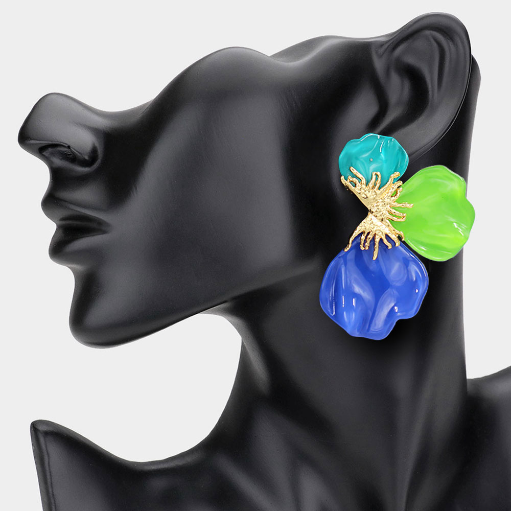 Rhinestone Embellished Metal Flower Honey Bee Beaded Open Circle Earrings
