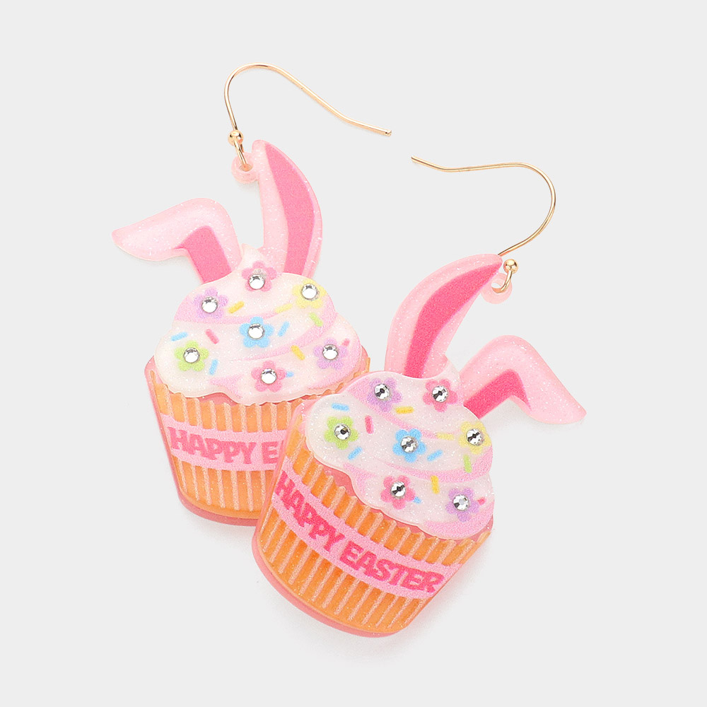 Resin Happy Easter Message Bunny Cupcake Dangle Earrings
