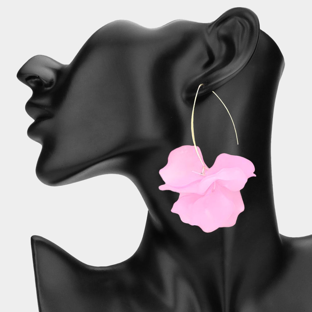 Details • Size : 2.25" X 2.7" • Long Hook Back • Elevate your look with this striking floral hoop earring featuring a large layered petal design. Lightweight yet impactful, it's perfect for making a chic, artistic statement at any event or outing. • Lead and Nickel Compliant